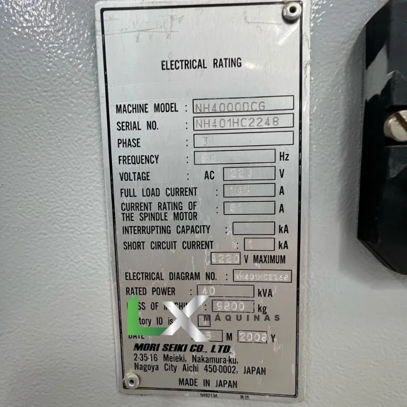 CENTRO DE USINAGEM HORIZONTAL MORI SEIKI NH4000 – 2008