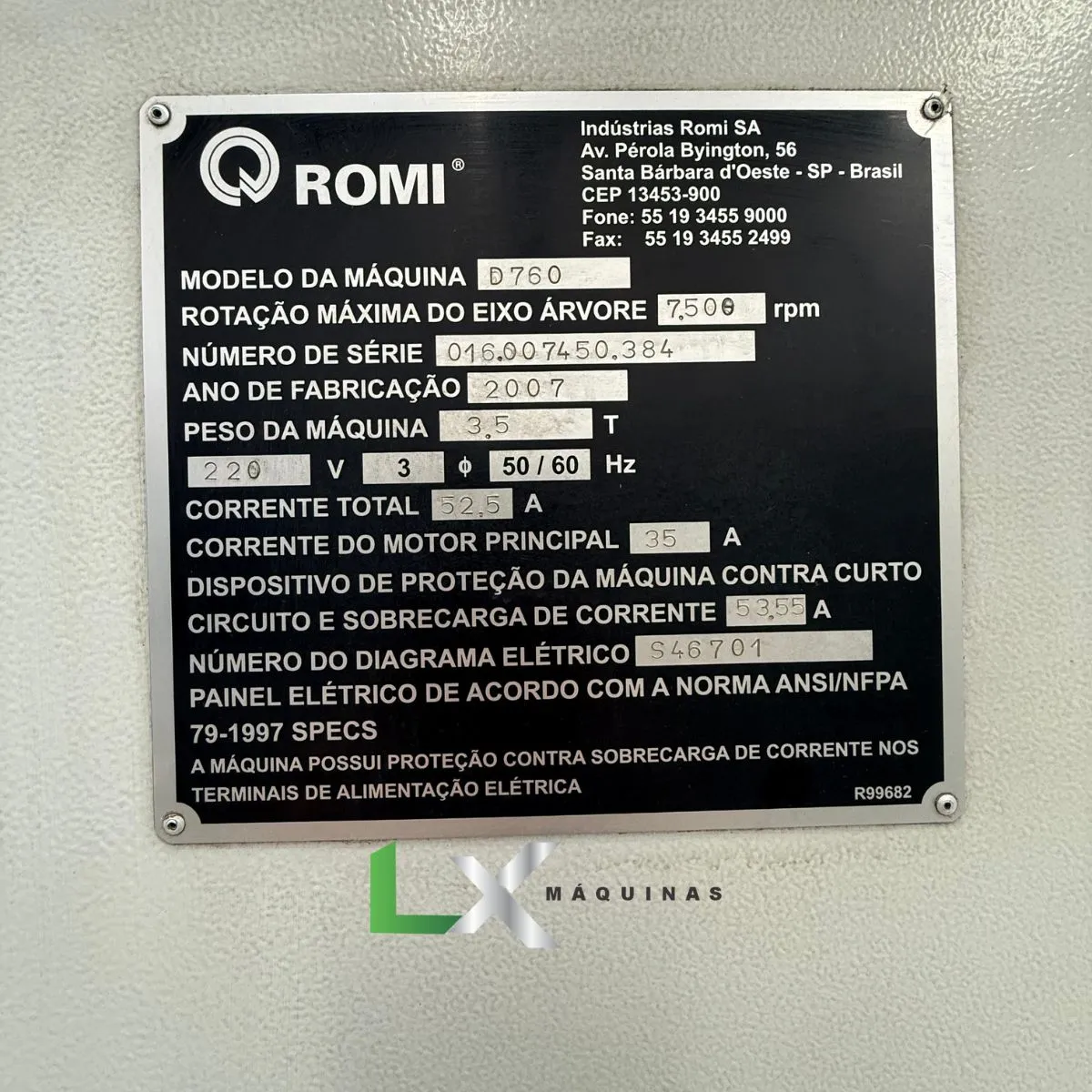 PESO DA MÁQUINA: 3.500 KG
