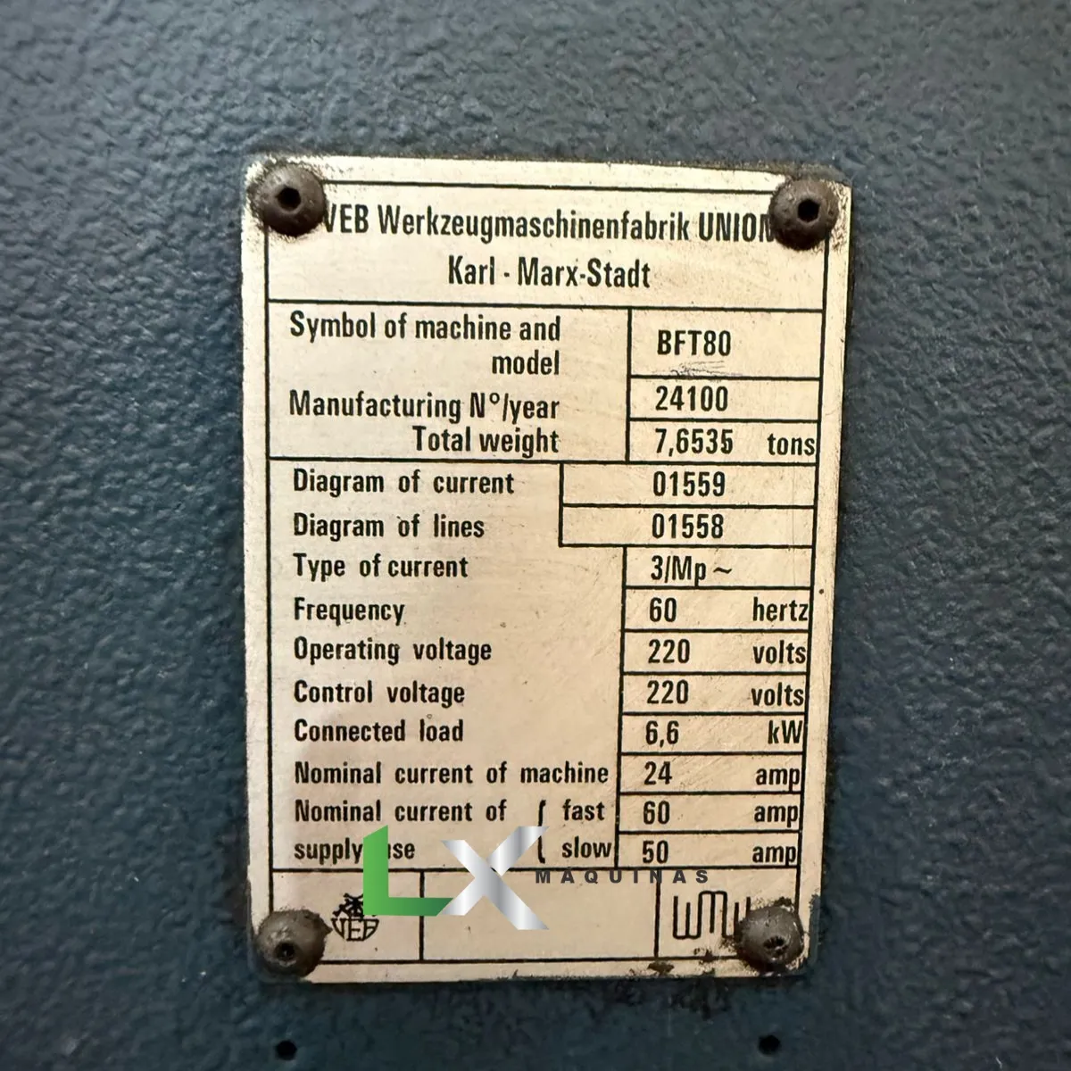 MANDRILHADORA UNIVERSAL UNION BFT80 – MESA GIRATORIA1000 X 1000 MM