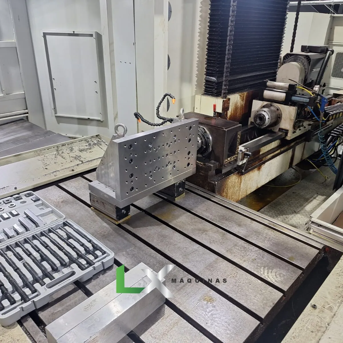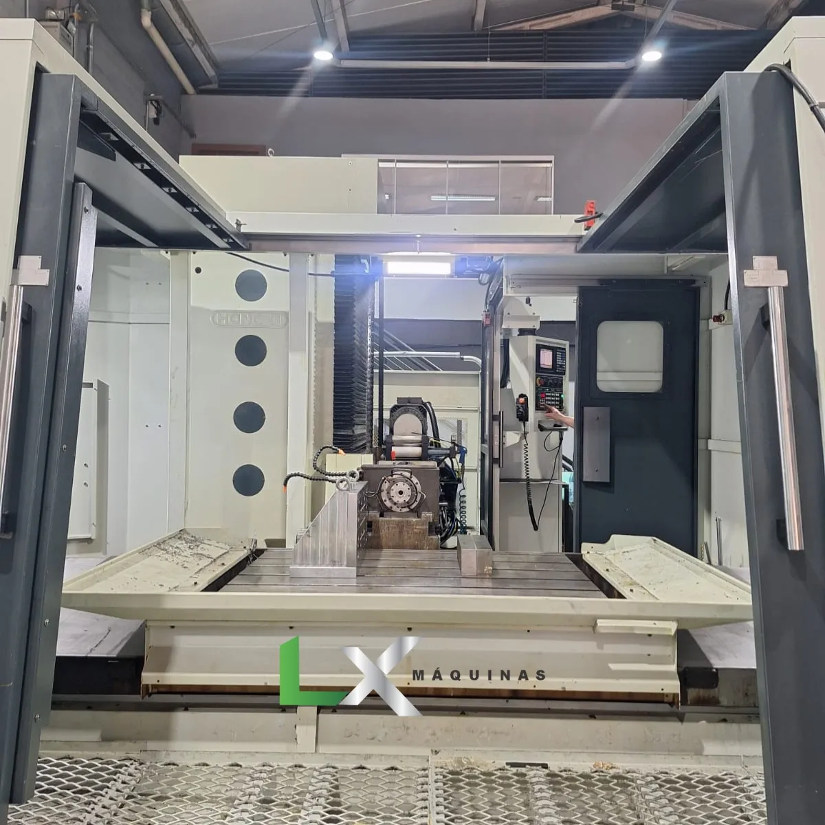 - COLUNA LARGA E RÍGIDA FORNECE EXCELENTE SUPORTE AO MOVIMENTO DO EIXO Y. O PESO TOTAL DA MÁQUINA É DE 24 TONELADAS.