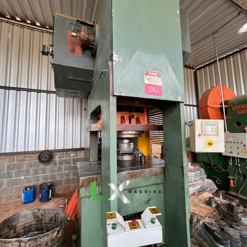 A Prensa Excêntrica com Freio e Fricção MSL de 250 toneladas com desbobinador, fabricada no ano de 2005, é uma máquina industrial utilizada para diversas exportações de estampagem, conformação ou corte de materiais, como metais, plásticos, papéis, entre outros.