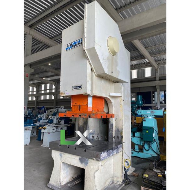 Uma Prensa Excêntrica com Freio de Fricção Jundiaí de 200 toneladas é uma máquina industrial utilizada em uma variedade de operações de estampagem, conformação ou corte de materiais. Vamos analisar esta informação: 1. **Prensa Excêntrica com Freio de Fricção**: Esse tipo de prensa utiliza um sistema de freio de fricção para controlar o movimento do êmbolo ou cabeça da prensa. Isso permite controlar com precisão o tempo de parada e a velocidade das operações, tornando-o adequado para uma variedade de aplicações industriais.