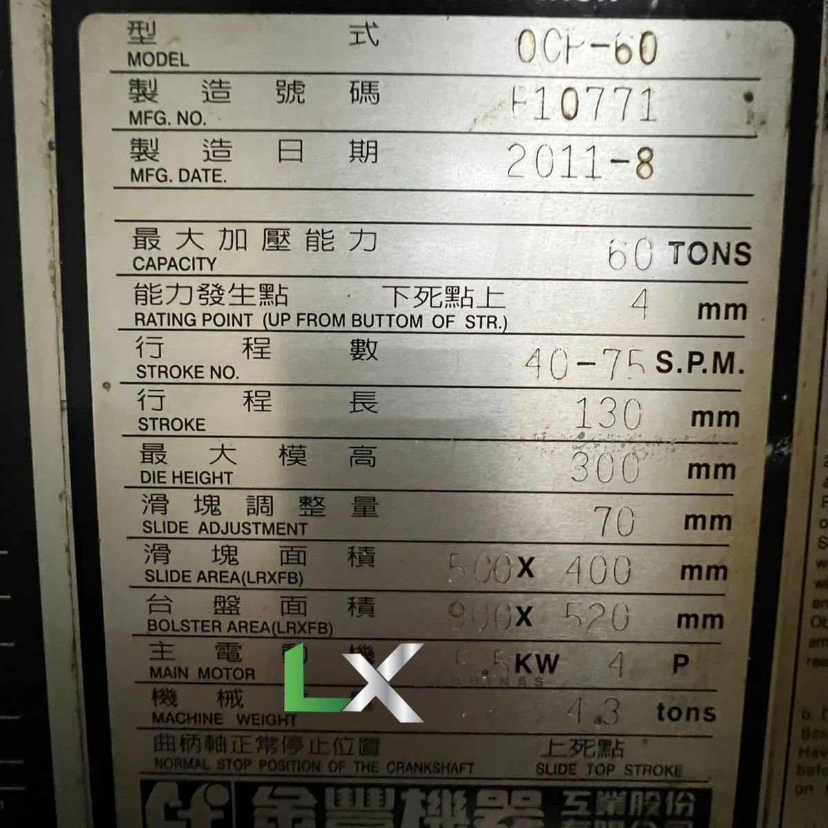 PRENSA EXCENTRICA TIPO C CHIN FONG OCP60 – ANO 2011