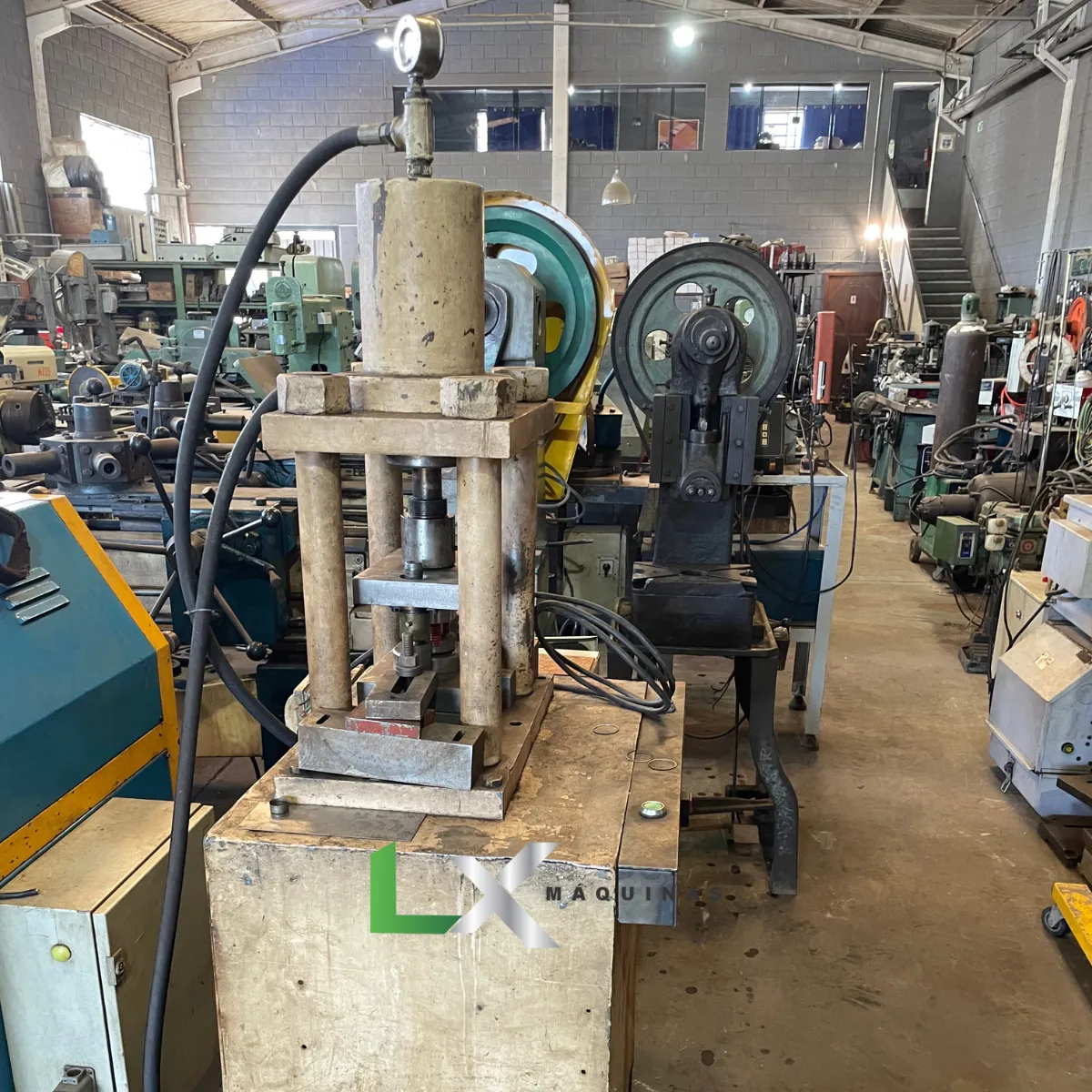 Prensa hidráulica compacta e robusta, ideal para serviços de manutenção, montagem, desmontagem de peças, prensagem de buchas, rolamentos e pequenos componentes.