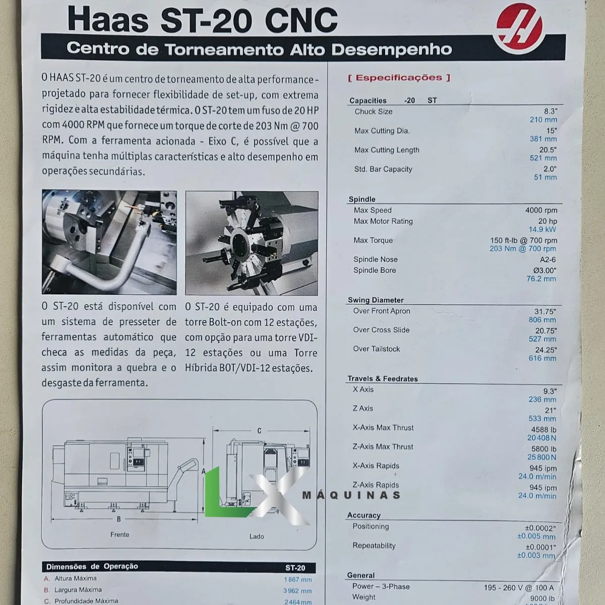 TORNO CNC HAAS ST20 – 381 X 540 MM – ANO 2011